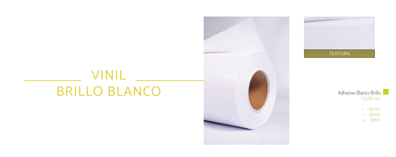 Adhesivo Blanco Brillo 1,52x50 mts • 140 Mic • 100Mic • 80Mic