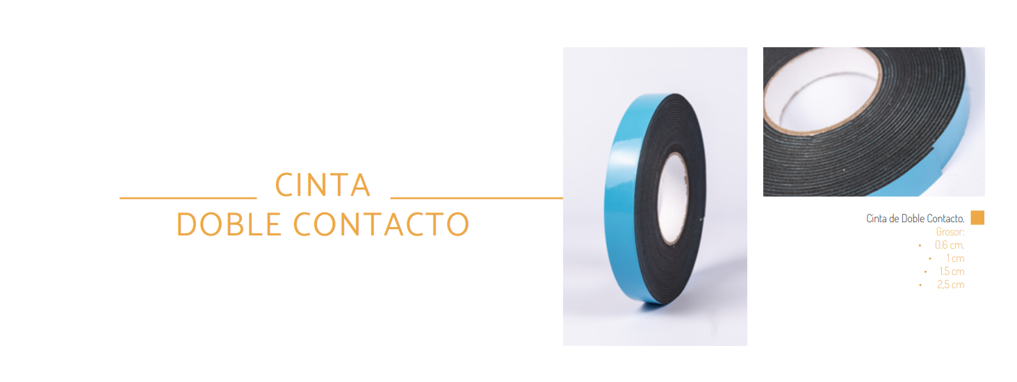 Cinta de Doble Contacto. Grosor: • 0.6 cm. • 1 cm • 1.5 cm • 2,5 cm